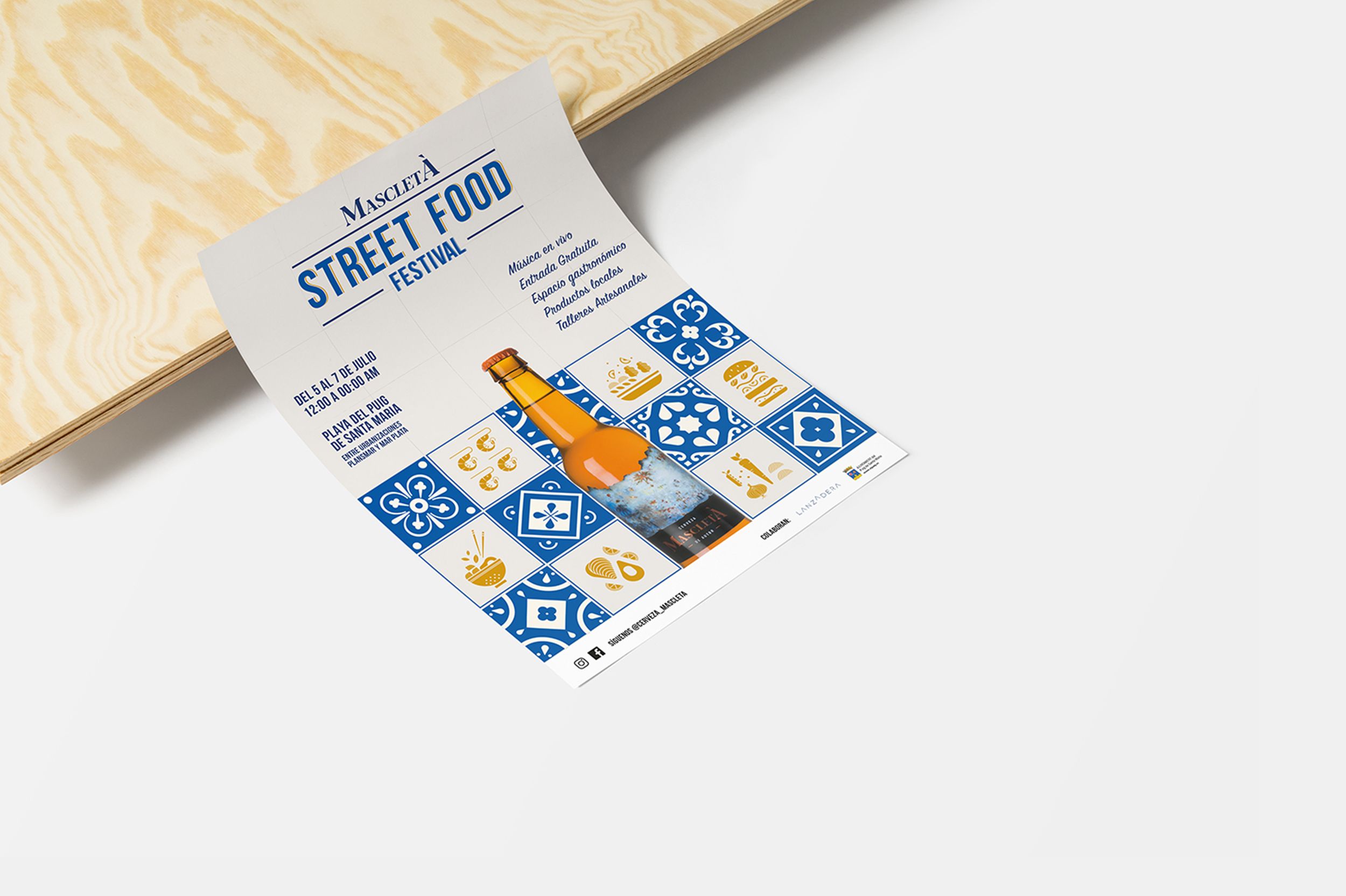 Visually, one of the most representative things of Valencia and of its streets are the ceramic tiles. We used this idea to unify the concepts of Street Food, gastronomy and Valencia. As a result, we created a flexible visual language that we applied to all the different collaterals. The aim was to connect with the local public of Valencia.
